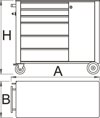 - 7 sertare frontale dim. 560×365 mm (5 inalte de 70 mm and 2 inalte de 150 mm)