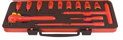 Trusa capete chei tubulare 3/8″ izolate la 1000 V in cutie metalica – 239VDEDP6P13, Dim. / Bucati: 13